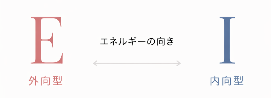 エネルギーを外に向けるか、内に向けるかの軸です。E(外向)は外界から、I(内向)は自分の内面からエネルギーを得やすい傾向があります。