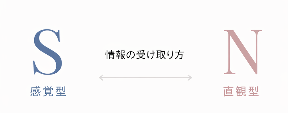 情報をどう受け取るかの軸です。S(感覚)は事実や具体例、N(直観)は背景のパターンや可能性から考え始める傾向があります。