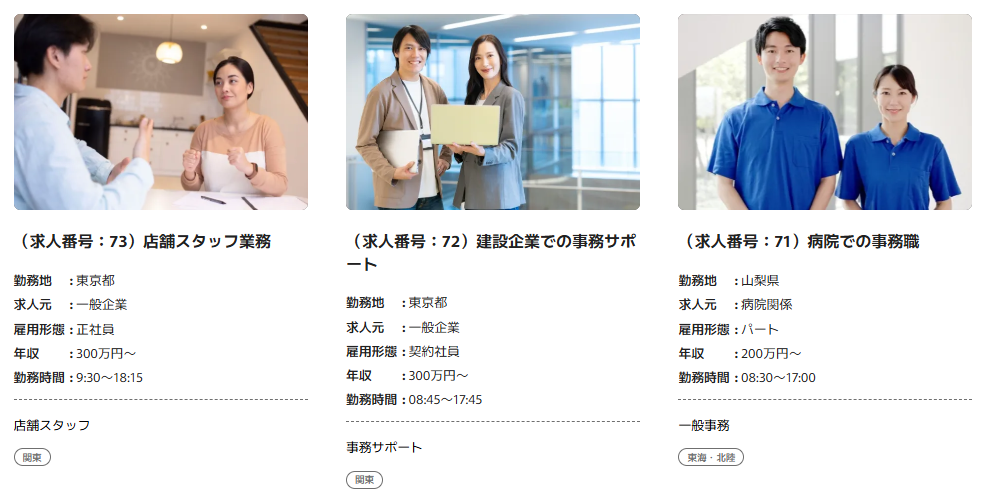具体的には、事務職・営業サポート・店舗スタッフ・製造職・エンジニアなど、多様な業界・業種の求人を揃えており、専門性を活かしたい人から未経験で新しい仕事に挑戦したい人まで幅広く対応しています。