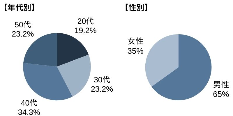 20代(19%)、30代(23%)、40代(34%)、50代以降(23%) - 性別(企業全体の比率):