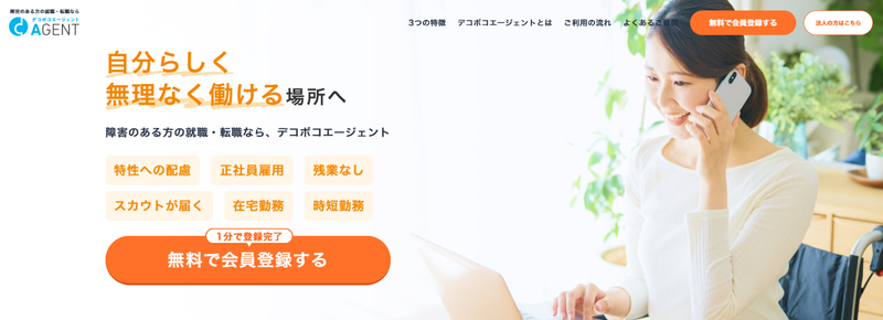 デコボコエージェントは、企業から直接スカウトを受け取れるのが強みの障害者向けの転職サイトです。発達障害や障害特性への配慮事項を確認しやすく、支援機関と連携しながら転職先を探したい方に向いています。