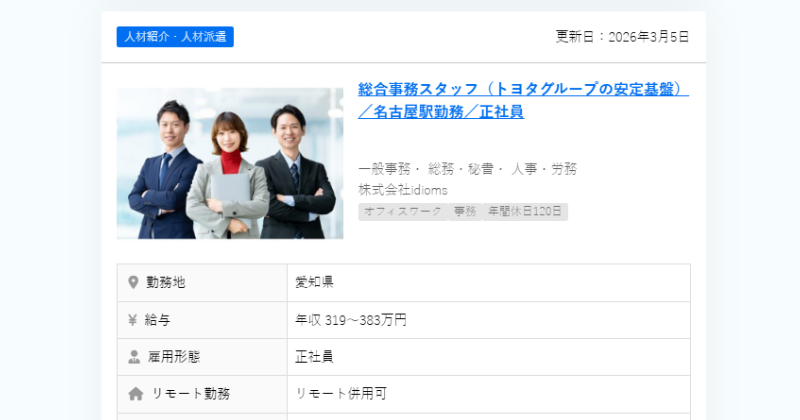 - リモートワーク可否や短時間勤務なども掲載